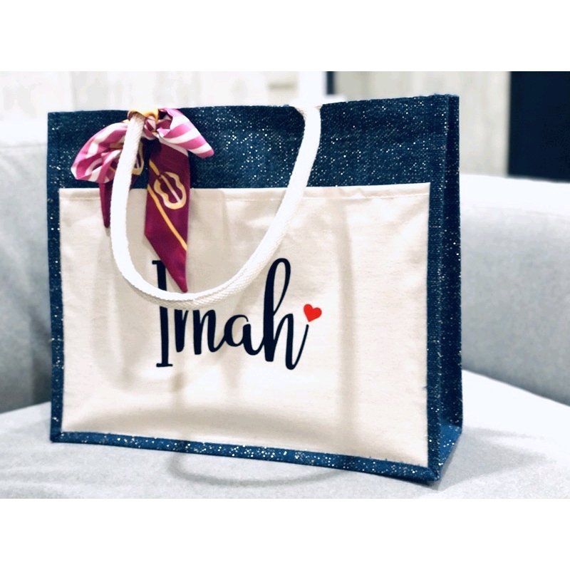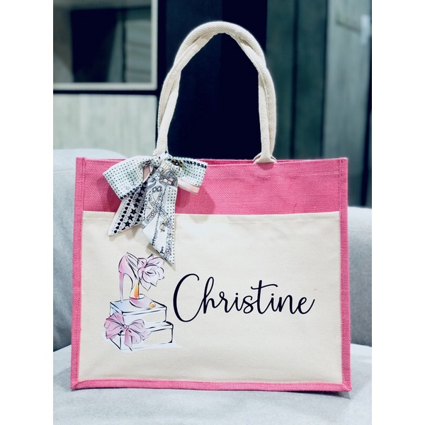 Birthday Gift Jute Bag With Name Hadiah Birthday Wanita Tote Bag Jute Bag Tote Bag Beg Wanita Handbag Women Shopee Malaysia