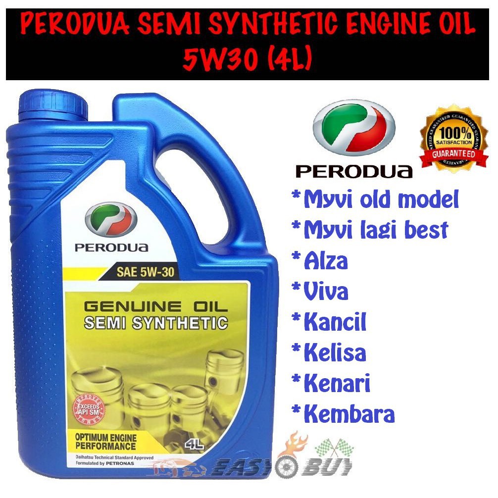 Original Perodua 5w30 Sae 5w 30 Semi Synthetic Engine Oil 4 Liter Free Oil Filter Minyak Enjin Minyak Hitam Myvi Alza Shopee Malaysia