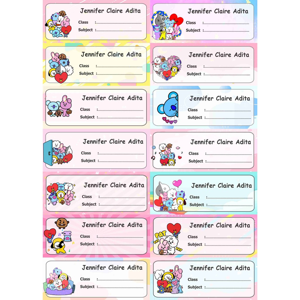 Isi 50 Pcs Label Mata Pelajaran Sticker Nama Buku Sekolah Kelas Pelajaran Untuk Anak Cewek Super Murah Label Nama Bt21 Sticker Nama Buku Bt21 Label Nama Bts Label